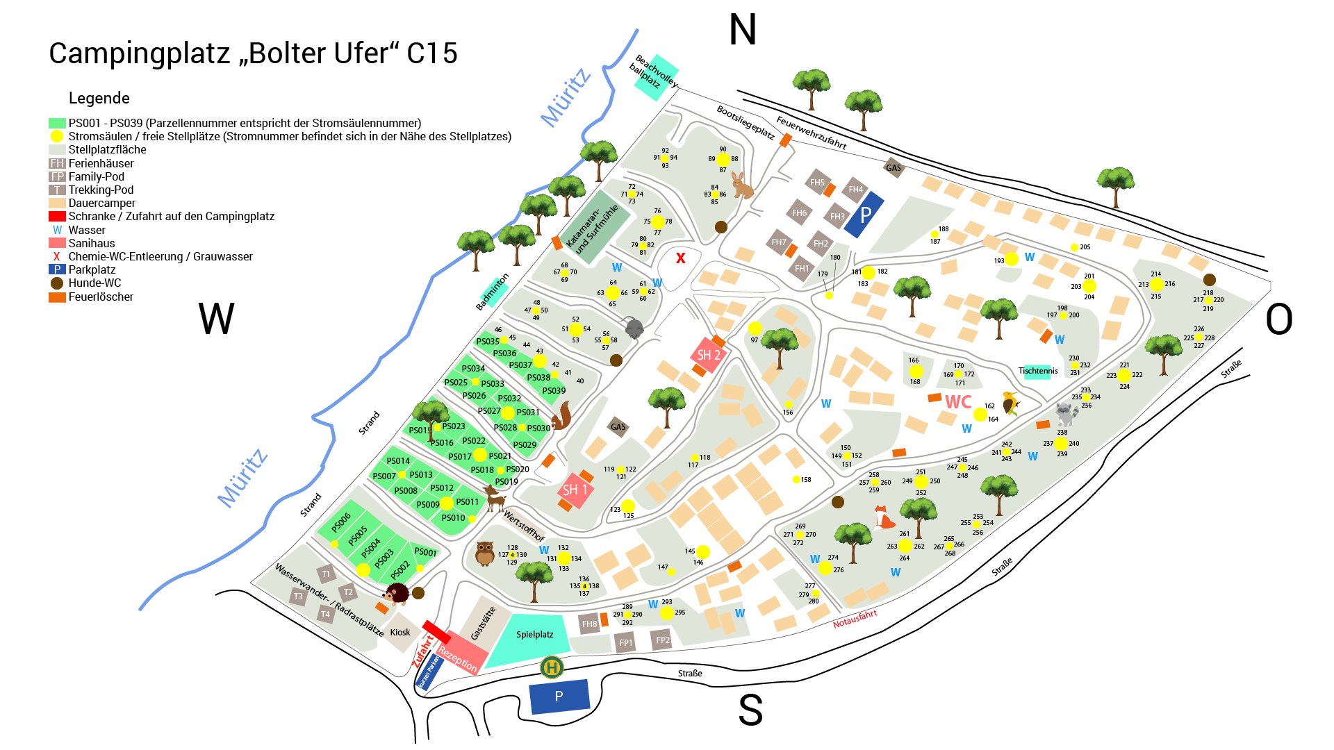 Natur-Campingplatz mit 39 parzellierten Stellplätzen, 228 freien Stellplätzen, 15 festen Unterkünften, einem Kiosk, einer Gaststätte, Fahrradverleih sowie einem eigenem Badestrand mit Katamaran- und Surfmühle. Vor Ort befindet sich auch gleich eine Bushaltestelle für die MÜRITZ rundum-Busse, die Sie bei Vorlage der Gästekarte kostenlos nutzen können.